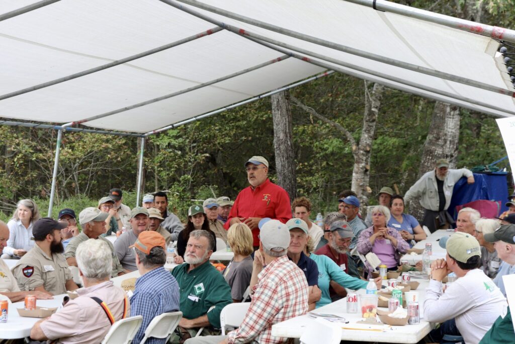 Tours were followed by lunch, provided by Brother Shucker food truck. Attendees gathered under the main tent for presentations and the awards ceremony. Presenters spoke about the importance of forestry in Maine and their appreciation for the exemplary stewardship practices GPMCT showcases for the community. Maine State Senator, and 2018 Outstanding Tree Farmer of the Year, Russel Black, shared how impressed he was with the work forester Roger Greene had led on the property. He emphasized the importance of leadership from organizations like Great Pond Mountain Conservation Trust in stewarding Maine’s forested landscape.